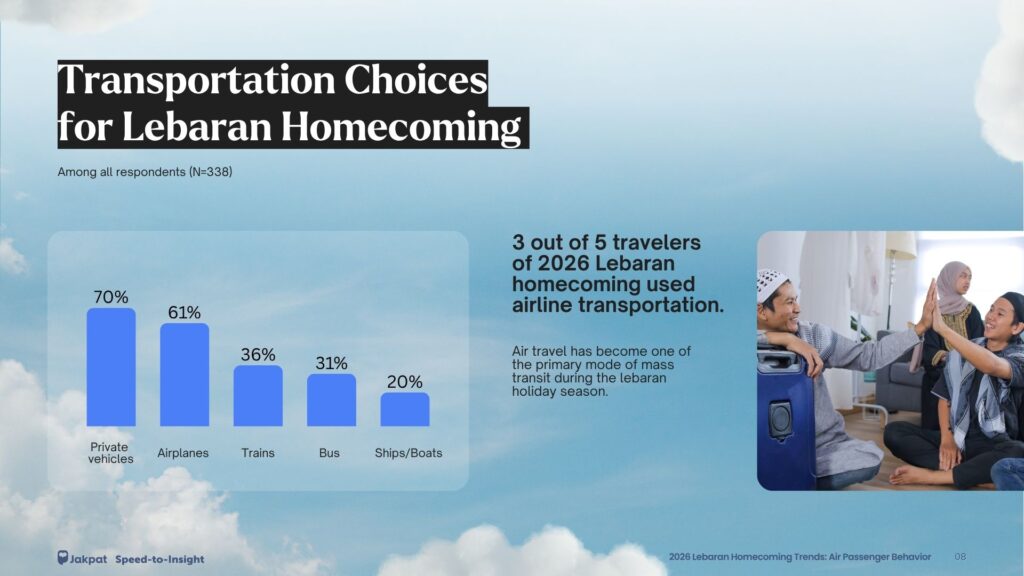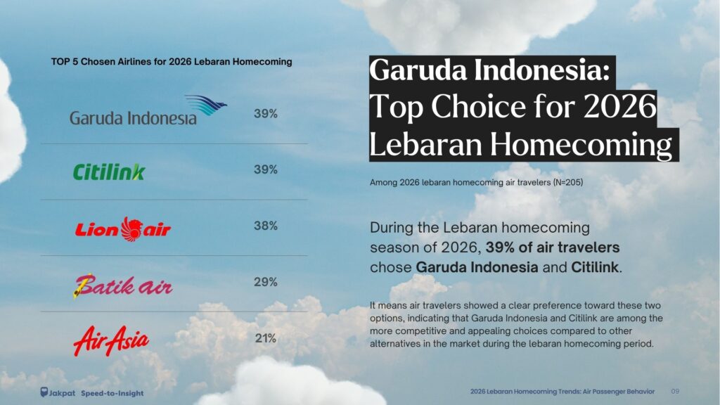 The report is based on responses from 338 passengers on domestic flights in the past 6 months who traveled for the Lebaran homecoming in 2026. They are the decision-makers in choosing which airline to use.