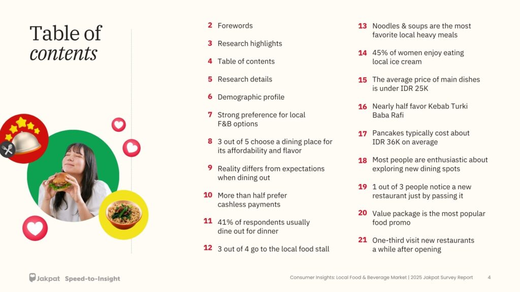 Jakpat conducted a survey to identify local food & beverage (F&B) trends across eight urban areas in Java, recognized as key economic hubs with high population density, in order to provide actionable insights for business owners evaluating potential expansion opportunities. The report involved 995 respondents and the data were collected on 2nd-7th of September 2025.